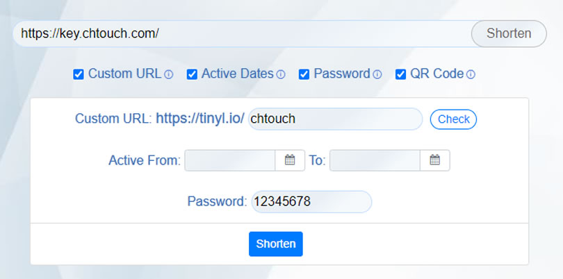首頁線上工具網路應用 Tinyl.io 可自訂開啟密碼及有效時間的縮短網址免費服務 使用縮短網址有便於傳送、記憶及閱讀等優點,但也容易成為惡意程式的包裝,讓人難以判斷的缺點,可將縮短網址的免費服務不少,像是 v.gd 或是可批次縮短網址的程式「幫我縮網址」 都是不錯的應用,而 Tinyl.io 這個網站同樣是個提供縮短網址的免費服務,其除了可以將過長的網址縮短外,還可由使用者自訂短網址的後綴、開啟密碼、有效期限、產生 QRCode及統計數據,比其單純的短網址服務,Tinyl.io 提供的功能算是相當全面。 🔔 不錯過任何精彩! 立即訂閱我們的 LINE 官方帳號 每次發佈新文章時,您將會第一時間收到本站文章連結通知,輕鬆掌握最新資訊! 使用 LINE 追蹤文章更新 §相關文章,還可以參閱:VPNLY 完全免費 VPN 工具,四國 20+ 伺服器免註冊無限流量Flying TTFB:免費網站測速工具!22個全球節點幫你找出網站慢在哪Google URL Shortener (goo.gl) 正式告別, 10個優質短網址替代方案推薦Zero Width Shortener (ZWS):隱形短網址的免費縮網址線上工具LibreSpeed SpeedtestCustom:免費網路速度測試工具,提供遠傳、台灣大哥大、中華、亞太等測試主機 如何使用 Tinyl.io? 1.使用瀏覽器進入 Tinyl.io 網站,貼上要縮短的網址,如果只想單純縮短網址,可以直接按[ Shorten ]按鈕直接產生短網址。 2.也可以使用更進階自訂短網址的後綴。 3.加入有效期限。 4.加入開啟密碼及產生 QRCode,按[ Shorten ]按鈕產生短網址。 ※如果想統計短網址帶來的成效,可以註冊成回會員,免費帳號有 500條短網址的限額。 Tinyl.io網站網址:https://tinyl.io/home.html