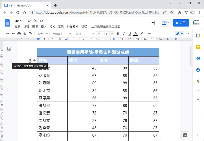 [ Google 文件 ]如何讓表頭固定在每頁的上方並且可排序?