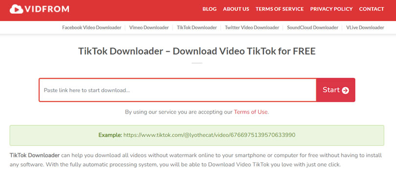 首頁線上工具上傳下載 VIDFROM TikTok Downloader 抖音影片下載器 在 TikTok 碰到想要下載保存的影片,有很多網站可以讓我們選擇,像是 Snap Tik、Mobile TikTok & Downloader 及 SaveTT.cc都相當好用,而 VIDFROM 這個網站推出的 TikTok Downloader 免費服務,同樣可用來下載抖音內的影音,使用者只須貼上影片網址就可以下載,且全程無廣告干擾,另外該網站尚有 Facebook、Vimeo、Twitter、SoundCloud 及 VLive 等社群內的影片下載服務,有需要可來試試。 🔔 不錯過任何精彩! 立即訂閱我們的 LINE 官方帳號 每次發佈新文章時,您將會第一時間收到本站文章連結通知,輕鬆掌握最新資訊! 使用 LINE 追蹤文章更新 §相關文章,還可以參閱:M3U8 Player:本地瀏覽器處理,播放、下載、轉 MP4 一站免費完成getM3U8 免費線上工具:輕鬆下載 M3U8 串流影片並轉檔 MP4SnapWC 免費影片下載器:一鍵搞定 YT、IG、FB、抖音等 10,000+ 平台影片、音訊、圖片需要分享圖片連結?試試 PiXhost 免費圖床服務P2PFileShare 線上 P2P 傳檔免費工具,免安裝無檔案大小限制直接瀏覽器傳輸 如何使用 VIDFROM TikTok Downloader 下載 TikTok 影片? 1.使用瀏覽器開啟 VIDFROM TikTok Downloader 網站,將複製好的 TikTok 影片網址,貼到輸入框中,再按[ Start ]按鈕。 2.接下來就會列出影片的相關資訊,點擊[ Download ]按鈕就可以開始下載。 3.除了可以使用 VIDFROM TikTok Downloader 線上下載器外,也可以在 Edge 或是 Chrome 安裝瀏覽器擴充功能。 VIDFROM TikTok Downloader網站網址:https://vidfrom.com/tiktok-downloader/相關網址:VIDFROM TikTok Downloader 瀏覽器擴充功能