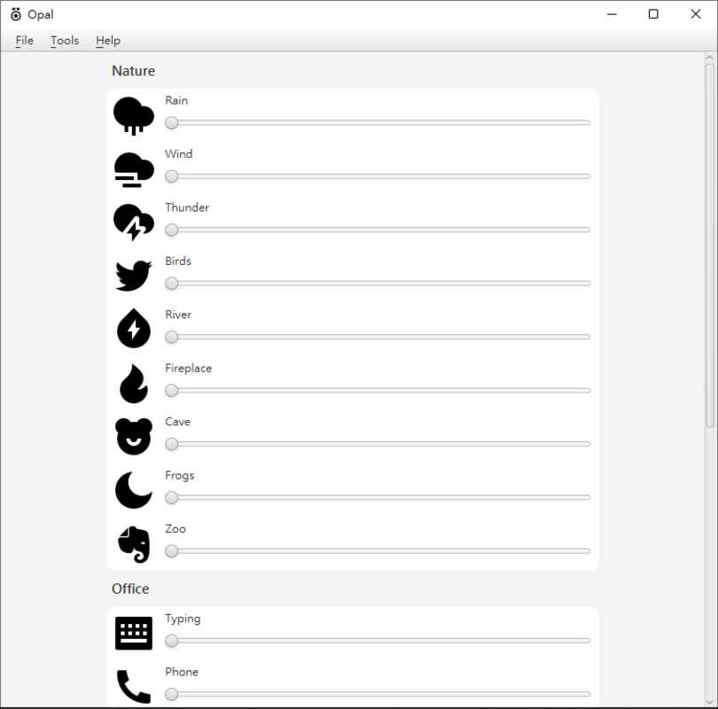 首頁電腦軟體生活資訊 Opal 可自由混搭雨聲、風聲、交通聲...等 17種環境音播放器 不論是在安靜或吵雜的環境中工作或休息,常會因為一個突然聲音就中斷原有正在進行中的事項,為避免這種情形,我們可以在環境中加入頻率、聲調持續一致,且長時間重複的聲音,讓這段時間不受干擾保持專注,Opal 是個 Windows 應用程式,其提供包含大自然中的雨聲、風聲、雷聲、鳥叫聲...及辦公室內的電話聲、交談聲...等共 17種環境音讓使用者自由混合搭配使用,並提供定時器設定固定的播放時間。 🔔 不錯過任何精彩! 立即訂閱我們的 LINE 官方帳號 每次發佈新文章時,您將會第一時間收到本站文章連結通知,輕鬆掌握最新資訊! 使用 LINE 追蹤文章更新 §相關文章,還可以參閱:地牛Wake Up! - 電腦版的地震速報免安裝「姓名吉凶分析」輸入姓名就幫你分析吉凶Complete Anatomy 使用 3D 了解人類身體結構樂透選號機 - 大樂透、樂透彩、今彩 539、樂線 9宮格號碼產生器(免安裝)RandomNames 英文名字產生器(免安裝) 如何使用 Opal 製造環境音? 1.解壓縮免安裝版後,滑鼠雙擊 Opal.exe 便可以開啟。 2.使用方式很簡單,僅需使用滑鼠調整每項環境音的大小聲即可。 3.可利用上方功能表 Tools > Setting 設定定時器,並在 Tools > Timer 啟用 。 4.每次混合後,都可以利用 File > Save sound settings 進行存檔,方便下次聆聽。 Opal版本:1.0.3語言:英文性質:免費適用:Windows | Linux官方網站:https://codedead.com/software/opal下載:Windows: 安奘版 按我下載 免安奘版 按我下載 Linux: 免安奘版 按我下載