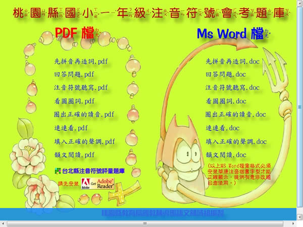 首頁教育學習考試題庫 國小一年級注音符號大會考題庫,有「先拼音在造詞」、「回答問題」、「看圖圈字」等 8 個單元 2023-10-17 更新下載連結。 國小一年級的大事,對有注音會考的縣市及學校來說,應該是小一新鮮人面臨入學以來的第一次挑戰,注音會考主要用來了解小一新生在入學第十周的學習情形。多數的小一新生(應該還包含很多人),對ㄥ及ㄣ 與 ㄗ與ㄘ 都還是會搞混,透過測驗能對學習情況不佳的學生,能盡早發現,給予適時輔導。「國小一年級注音符號會考題庫」由桃園縣教育局國教輔導團語文領域組製作,分為 PDF 格式與 Word 格式,家長可先下載,讓小朋友練習。 🔔 不錯過任何精彩! 立即訂閱我們的 LINE 官方帳號 每次發佈新文章時,您將會第一時間收到本站文章連結通知,輕鬆掌握最新資訊! 使用 LINE 追蹤文章更新 §相關文章,還可以參閱:tcool.cc 接入 AI 的全國中小學題庫網,AI 解題×智慧出題,翻轉傳統刷題模式一句話教你啟動免費 SAT 模擬考!Gemini 攜手普林斯頓評論,國際班學生備考新利器如何利用 Google 進階搜尋找到相似題目的考古題?全國中小學題庫網-各校題庫網址國中教育會考歷屆試題、答案免費下載 如何使用國小一年級注音符號會考題庫? ※ http://ymps.tyc.edu.tw/phonic/ 已不再適用,如果還需要注音符號會考題庫,點選注音會考題庫下載。 請先解壓縮所下載的檔案,內含有: 1.韻文。 2.填入正確的聲調。 3.圈出正確的讀音。 4.回答問題。 5.看圖圈詞。 6.連連看。 7.先拼音再造詞。 8.看圖填注音。 以上均為 PDF 檔案。------以下為舊內容------ 1.進入 國小一年級注音符號會考題庫 後,建議使用 PDF 檔案格式,Word 檔案格式,需有「華康注音楷書」該字型來搭配,取得有點不易。 2.點擊所要練習的單元,便可下載或線上開啟(需安裝 PDF 閱讀器)。 國小一年級注音符號會考題庫網站網址:http://ymps.tyc.edu.tw/phonic/相關網址:注音會考題庫
