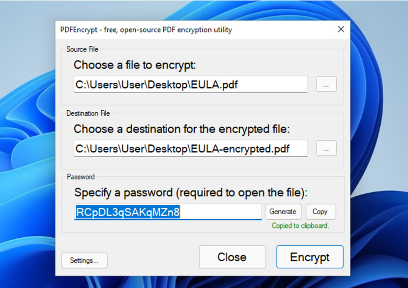 首頁電腦軟體資訊安全 PDFEncrypt 替 PDF 檔案加入禁止列印、注釋、複製、修改及開啟密碼等保全限制 現在要製作一個 PDF檔案相當簡便,像是 Word 或是 Google 文件都有內建匯出 PDF檔案工具,即便是沒有,只要是具有列印功能的應用程式,也都可以利用內建在 Windows 的 Microsoft Print to PDF 虛擬印表機直接轉出一個 PDF 檔案,但,這樣轉出的 PDF 檔案最多就是個無法編輯的 PDF檔案,實在是沒有善用到 PDF 檔案保全限制保護文件的優點, 想要替 PDF 加入保全限制,可以來使用 PDFEncrypt 這套免費的 Windows 應用程式,該程式預設會替 PDF檔案加入開啟密碼並讓用戶選擇是否加入列印、注釋、複製、修改..等保全限制,如此一來,即便是轉出來的 PDF檔案,也能有嚴謹的保全機制。 🔔 不錯過任何精彩! 立即訂閱我們的 LINE 官方帳號 每次發佈新文章時,您將會第一時間收到本站文章連結通知,輕鬆掌握最新資訊! 使用 LINE 追蹤文章更新 §相關文章,還可以參閱:WHDownloader 微軟 Office及 Windows 更新檔下載器Free Virtual Keyboard 虛擬鍵盤免費軟體 (螢幕小鍵盤)BlankAndSecure 讓刪除的檔案無法被還原[ Windows Server ]如何使用 win-acme 申請 Let's Encrypt SSL 並安裝到 IIS?微軟 Windows File Recovery 檔案救援免費工具 如何使用 PDFEncrypt 替 PDF檔案加入限制列印、開啟密碼等保全限制? 1.以 PDFEncrypt 免安裝版為例,解壓縮後,開啟 PDFEncrypt.exe 檔案。 2.Choose a file to encrypt 處,點擊 ... 按鈕圖示選擇要加入 PDF 檔案,在 Password 處,可按[ Generate ]按鈕,自動生成密碼,亦可以由使用者自行輸入,完成後,案[ Encrypt ]按鈕。 3.加入開啟密碼後的 PDF 檔案,預設會啟用限制列印、複製、注釋...等相關保全措施。 4.上述的保全措施,可以按[ Settings... ]按鈕,開啟設定視窗進行修改。 PDFEncrypt版本:1.0.7258.23287語言:英文性質:免費適用:Windows官方網站:https://pdfencrypt.net/下載: 安裝版按我下載 免安裝版按我下載