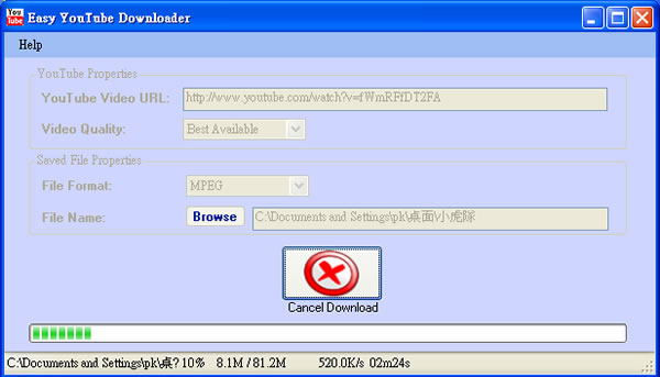 5.Easy YouTube Downloader便會根據你的要求開始下載,並且自動轉成.avi格式