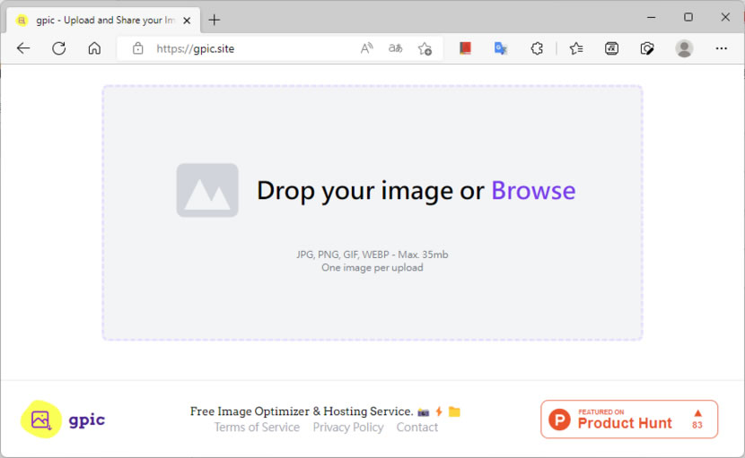 首頁線上工具雲端儲存 gpic 免費圖床服務 如果使用的架站主機空間不夠或是服務不提供圖片儲存服務又要使用圖片發文,則圖床就是個很好的選擇,雖然,我們可以將圖片放到「Google 雲端硬碟」然後透過 Image Host Company 這個網站轉出可顯示在網頁中的圖片網址,但畢竟這只是「Google 雲端硬碟」的變相用法,而 gpic 這個網站則是以圖床為其主要服務,使用方式非常簡單,使用者只要將圖片上傳, gpic 就會產生 Markdown、Share 及 Link 三種網址讓使用者可以做後續的應用,另外,該服務無須註冊就可使用,而圖片儲存時間為 45天。 🔔 不錯過任何精彩! 立即訂閱我們的 LINE 官方帳號 每次發佈新文章時,您將會第一時間收到本站文章連結通知,輕鬆掌握最新資訊! 使用 LINE 追蹤文章更新 §相關文章,還可以參閱:「免費圖片空間」Freeimage.host 讓您輕鬆上傳圖片並獲得分享連結LinkPicture 免費圖床上傳產生 URL 外連網址 圖片可直接檢視或內嵌到網頁imghut 免費圖片分享空間 可直接嵌入網頁使用Archive Forever 輸入網址就可以將網頁或網頁截圖永久儲存在區塊鏈上ZoomHub 線上免費圖片分享空間 可內嵌到其它網頁 如何使用 gpic 圖床服務? 1.使用瀏覽器進入 gpic 網站,將圖片使用滑鼠拖曳進虛線框內就會上傳,支援 JPG、PNG、GIF 及 WEBP圖檔格式,檔案大小需在 35MB以內。 2.完成上傳,就會有 Markdown、Share 及 Link 三種網址可供選用。 3.HTML 常用的 img src 可複製 Link 網址來做後續的應用。 gpic網站網址:https://gpic.site/