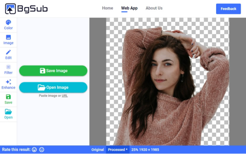 首頁線上工具影像繪圖 BgSub 全自動化的圖片去背景或背景合成免費線上服務 如今要將圖片背景去除成透明狀或是替換成其它背景的工具有相當多的選擇,BgSub 是個可自動化將圖片去除背景的免費網站,其使用方式很簡單,使用者僅需進入 BgSub 網站將圖片交由瀏覽器處理,就可以取回已去背景且無任何浮水印的圖片,除此之外,已去背景的圖片,也可以替換成系統準備的背景或是由使用者自行上傳的背景圖,BgSub 處理相片的內容並不限定人物,舉凡產品、動物、衣服及植物都可以處理,相當方便。 🔔 不錯過任何精彩! 立即訂閱我們的 LINE 官方帳號 每次發佈新文章時,您將會第一時間收到本站文章連結通知,輕鬆掌握最新資訊! 使用 LINE 追蹤文章更新 §相關文章,還可以參閱:Google 親自示範:Nano Banana AI 圖像編輯工具的 13 個熱門玩法照片角度不滿意?AI 幫你調整!3D Camera Control 讓舊照片任意變換視角Meta AI 免費帳戶也能用 Midjourney!無限生成 AI 圖片,台灣可用Nano Banana Pro 幫你放煙火,地點、形狀由你指定Mock.Club:免費 AI Mockup 素材庫,拖曳截圖立即生成專業展示圖 如何使用 BgSub 去除或加入背景? 1.使用瀏覽器進入 BgSub 網站,看完說明就可以點擊[ Launch BgSub ]進入實際圖片去背景的操作。 2.點擊[ Open Image ]選擇圖片或直接使用 BgSub 所準備的範例圖。 3.完成處理後就可以點擊[ Save Image ]直接下載,或是使用頁面最左側的 Color、Image、Edit ...等工具來替換背景或編輯圖片。 BgSub網站網址:https://bgsub.com/