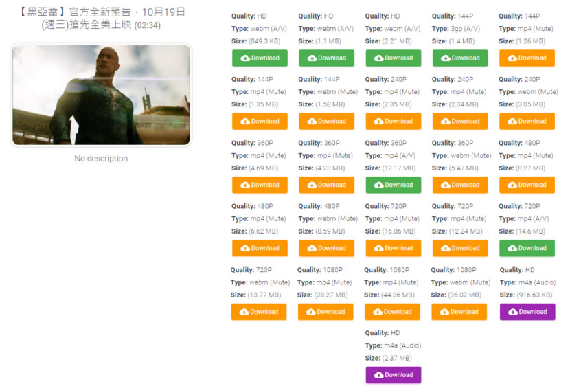 首頁線上工具上傳下載 Video Downloader 線上萬能影片下載器 ,可下載多達 800 個網站的影片 要下載不同網站內的影片,通常我們需要找到專屬該網站的下載工具,例如 Facebook、TikTok 或是 YouTube 都有相對應的下載工具,而 Video Downloader 這個免費網站則是通吃上述網站外,另外還可下載像是 Twitter、Instagram、Vimeo、CNN、X開頭系列...等超過 800個網站內的影片,其使用方式也很簡單,僅需貼上影片網址,就可以下載。 🔔 不錯過任何精彩! 立即訂閱我們的 LINE 官方帳號 每次發佈新文章時,您將會第一時間收到本站文章連結通知,輕鬆掌握最新資訊! 使用 LINE 追蹤文章更新 §相關文章,還可以參閱:M3U8 Player:本地瀏覽器處理,播放、下載、轉 MP4 一站免費完成getM3U8 免費線上工具:輕鬆下載 M3U8 串流影片並轉檔 MP4SnapWC 免費影片下載器:一鍵搞定 YT、IG、FB、抖音等 10,000+ 平台影片、音訊、圖片需要分享圖片連結?試試 PiXhost 免費圖床服務P2PFileShare 線上 P2P 傳檔免費工具,免安裝無檔案大小限制直接瀏覽器傳輸 如何使用 Video Downloader 下載 YouTube 影片? 1.使用瀏覽器進入 Video Downloader 網站,可以先點擊 SUPPORTED SITES,看看支援哪些網站內的影片下載。 2.回到首頁,以 YouTube 為例,貼上影片網址,按[ Download ]按鈕。 3.完成解析後就會列出可供下載的影音檔案。 4.點擊要下載的影音格式,便可透過播放器內建的下載功能下載影片。 Video Downloader網站網址:https://pastedownload.com/25/