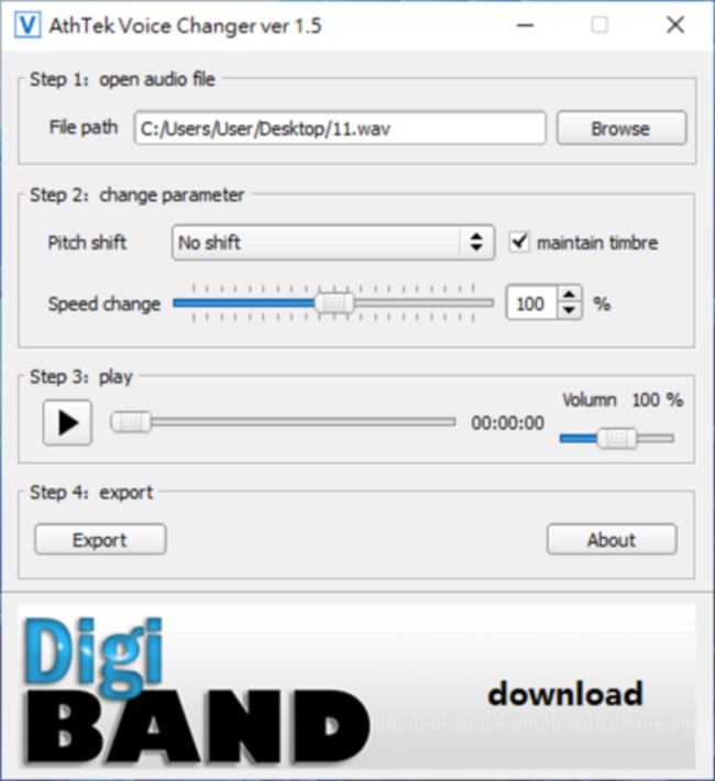 首頁電腦軟體影音視聽 AthTek Voice Changer 可調整 MP3播放速度、升降 Key及改變音量的免費軟體 取得的 MP3、WMA或是 WAV檔案,如果有調整播放速度、升降 Key及改變音量大小的需求,我們可以使用 AthTek Voice Changer 這套免費軟體按其設計的四個步驟就可輕鬆達成,唯一美中不足的地方就是調整完後只能以 WAV 檔案格式輸出,真要 MP3就需靠其它 WAV 轉 MP3 的免費服務來達成。 🔔 不錯過任何精彩! 立即訂閱我們的 LINE 官方帳號 每次發佈新文章時,您將會第一時間收到本站文章連結通知,輕鬆掌握最新資訊! 使用 LINE 追蹤文章更新 §相關文章,還可以參閱:超實用免費軟體!DCP-o-matic 讓你的影片變成電影院 DCP 播放格式語音轉文字免費工具 AsrTools 輕鬆搞定字幕、筆記或歌詞整理免費的 PotPlayer 開始搭載 Whisper AI,讓你即時生成字幕與翻譯,外語影片輕鬆看SpleeterGUI:簡單易用的 AI 音軌分離免費開源工具如何使用 Microsoft Clipchamp 自動產生影片字幕? 如何使用 AthTek Voice Changer 調整 MP3播放速度、升降 Key及改變音量大小? 1.完成安裝,開啟 AthTek Voice Changer 後,按其所設計的四個步驟操作,首先,點擊[ Browser ]按鈕來加入 WAV、WMA 或 MP3檔案。 2.在 Step 2 可以調整音檔的播放速度及升降 Key。 3.Step 3 可以改變音檔的音量,改變的過程可按播放按鈕試聽。 4.調整完成後,按[ Export ]按鈕匯出 wav 檔案。 AthTek Voice Changer版本:1.5語言:英文性質:免費適用:Windows官方網站:http://www.athtek.com/voicechanger/free.html#.Yz6BBnZ-W01下載:按我下載