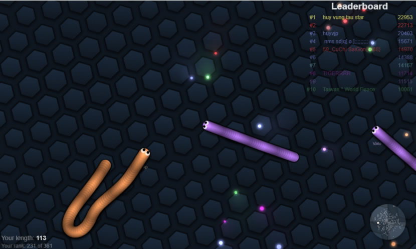 首頁線上工具益智遊戲 slither.io 使用瀏覽器與其他玩家一起玩貪食蛇 不論有無玩過貪食蛇都可以來 slither.io 這個網站體驗用滑鼠游標控制貪食蛇方向的線上遊戲,除了與傳統用方向鍵控制方向外,另外一點就是同時間還會有玩家會在線上一起玩,除了控制蛇的方向去吃彩球外,還要避免碰到其他玩家的蛇,因為碰到就 GG 需重來。 🔔 不錯過任何精彩! 立即訂閱我們的 LINE 官方帳號 每次發佈新文章時,您將會第一時間收到本站文章連結通知,輕鬆掌握最新資訊! 使用 LINE 追蹤文章更新 §相關文章,還可以參閱:Google Doodle 萬聖節遊戲登場!小精靈 45 週年特別版完整介紹毫秒級反應力大挑戰!用 Reaxon 訓練大腦、眼睛與手的協調反應2048 Cupcakes 經典單人 2048 滑塊線上遊戲,AI 輔助輕鬆挑戰高分免費線上拼圖遊戲平台:iLoveJigsaw 可自行上傳圖片製作拼圖Songlio:線上聽音樂猜歌曲名稱遊戲,可自訂歌曲題庫並與多人一起挑戰 如何玩 slither.io 所設計的貪食蛇遊戲? 1.使用瀏覽器進入 slither.io 網站,輸入暱稱後按[ Play ]就可以開始遊戲。 2.要控制蛇的方向是用滑鼠游標來引導,不是使用鍵盤的方向鍵。 3.同時間還會有其他玩家在線上遊戲,因此除了控制方向外,還要避免碰到其他玩家的蛇,碰到就需重來,網頁右上角會顯示前十名玩家的分數。 slither.io網站網址:http://slither.io/