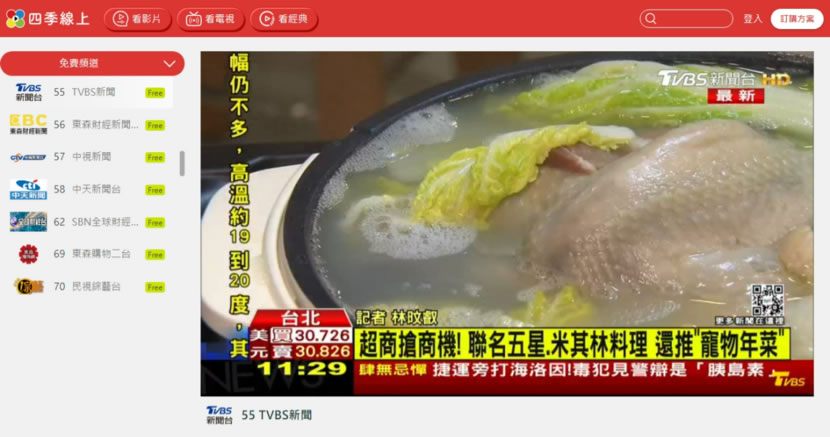 首頁線上工具生活資訊 不是 YouTube,哪裡還可以看 TVBS及東森新聞台網路直播? 要在網路看新聞台直播,通常會想到 YouTube 影音平台,大部分的新聞台像是大愛電視一、二台、公共電視、華視、寰宇、鏡電視、民視、台視、中視、中天、三等新聞台都不是問題,但 TVBS新聞台、東森新聞台始終無法如願在網路收看,如果還想要再網路上收到前述的 TVBS 及東森新聞台,我們可以前往「四季線上」免費頻道或是 LINE TV 等影音平台免帳號就可免費收看網路新聞直播。 🔔 不錯過任何精彩! 立即訂閱我們的 LINE 官方帳號 每次發佈新文章時,您將會第一時間收到本站文章連結通知,輕鬆掌握最新資訊! 使用 LINE 追蹤文章更新 §相關文章,還可以參閱:2026汽車隔熱紙新制228上路!前擋70%、前側窗40%透光率規定,新舊車主必知重點Apple TV+ 2026 全年節目大公開:每週推出全新原創劇集,《泰德拉索》第四季回歸!小米米家電磨筆開賣!NT$969 入手纖細筆型設計,木雕、模型打磨一筆搞定史上最高12億!台彩春節大紅包連抽到元宵,銷售時間、玩法規則一次看2026年特色春聯索取指南:總統府、法鼓山、靈鷲山等重點發放據點整理 如何在「四季線上」、「LINE TV」觀看免費頻道? 1.進入「四季線上」免費頻道,我們就可以直接透過左側電視台的選單,切換要收看的電視節目。 2.網路看新聞台直播,基本上都很順暢。 3.LINE TV 有提供 TVBS 新聞台、東森新聞台、台灣生活新聞及民視新聞台,可以全螢幕免費收看。 四季線上網站網址:https://www.4gtv.tv/channel/4gtv-live072?set=1&ch=129相關網址:LINE TV: 東森新聞台 TVBS 新聞台 民視新聞台 台灣生活新聞台