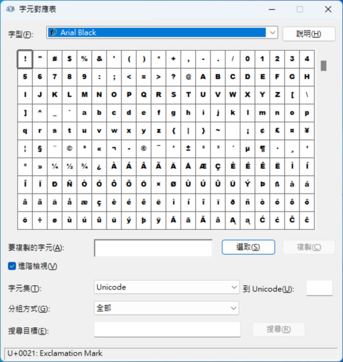 首頁操作技巧Windows 「Windows 11」如何開啟字元對應表? 文書編輯難免會用到特殊符號,在 Windows 系統,我們可以利用[ Windows 標誌鍵 + . ]鍵盤快速鍵開啟 Emoji 符號表來挑選包含表情、拉丁符號、貨幣及數學符號...等適合的特殊符號來應用,或是下載完整收錄 Unicode 字元表的 BabelMap 免安裝應用程式,另外,Windows 還有內建的「字元對應表」可供應用,「字元對應表」可以尋找和輸入在輸入法裡找不到的字元。 🔔 不錯過任何精彩! 立即訂閱我們的 LINE 官方帳號 每次發佈新文章時,您將會第一時間收到本站文章連結通知,輕鬆掌握最新資訊! 使用 LINE 追蹤文章更新 §相關文章,還可以參閱:學起來!微軟親授 10 個提升 Windows PC 效能的技巧如何升級 Windows 11 25H2?最新版本功能亮點與完整更新步驟Windows 工作列時鐘顯示秒數:真的會影響電池續航力嗎?LTT Labs 完整實測解析Windows 快速取出資料夾檔案名稱清單!內建功能輕鬆搞定,不用額外軟體Windows 11 如何縮小工作列圖示按鈕,打造更精簡桌面視覺 「Windows 11」如何開啟字元對應表? 1.第一種方法最簡單,可以透過[ 開始 ]選單 > Windows 工具 > 字元對應表。 2.第二種方法則是使用指令開啟,首先按[ Windows 標誌鍵 + R ]開啟命令執行視窗,輸入 charmap 後,按 Enter 鍵盤鍵,即可開啟。 3.另外,如果要尋求第三方應用程式,可以考慮 BabelMap。