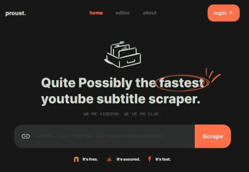 首頁線上工具翻譯辨識 「Proust」YouTube 影片語音轉文字免費工具 可翻譯及轉 PDF 或 Word 檔 如果想取得 YouTube 影片的字幕,我們可以透過YouTube 影片字幕下載工具,但不見得所有影片都有提供字幕,如果沒提供又想取得,我們可以透過 Proust 這個線上網站自己轉錄。Proust 是個可將 YouTube 影片語音轉文字的免費網站,使用方式很簡單,僅需貼上 YouTube 影片網址就可在短短的幾秒鐘內轉錄出該影片內的語音成文字,Proust 還貼心的提供文字編輯器,可直接在線上編輯成自己想要的格式,並轉成 PDF 或 Word 檔案,雖然 Proust 的 YouTube 影片語音轉文字服務目前僅限英語,但有提供翻譯工具,這對想學習英文或是想將影片製作成多國語言字幕就簡單多了。 🔔 不錯過任何精彩! 立即訂閱我們的 LINE 官方帳號 每次發佈新文章時,您將會第一時間收到本站文章連結通知,輕鬆掌握最新資訊! 使用 LINE 追蹤文章更新 §相關文章,還可以參閱:AI 翻譯新選擇:ChatGPT 翻譯功能全方位介紹與 Google 翻譯對比ScanQR 免費線上二維碼辨識工具,輕鬆解讀 QR Code 內容TTSMaker 線上文字轉語音免費工具,中文也沒問題Whisper JAX 免費語音轉文字工具,適用 Microphone、Audio File 及 YouTube 影片OLOCR 識別圖片或 PDF 內容文字,支援多國語言 如何使用 Proust 轉錄 YouTube 影片語音成文字並轉成 PDF 檔案? 1.進入 Proust 網站,貼上複製好的 YouTube 影片網址後,按[ Scrape ]按鈕。 2.我們以 第六屆何嘉仁國際英語力大賽 這個 YouTube 影片為例,將影片網址貼上,按[ Scrape ]按鈕,幾秒鐘內就可將文字轉到文字編輯器內。 3.透過文字編輯器,我們可以適時的編排格式及翻譯。 4.也可以直接轉成 Word 或 PDF 檔案,但中文無法正確顯示,解決方案就是選取後複製在貼到文書編輯器。 Proust網站網址:https://proust.app/