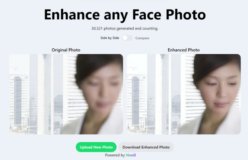 RENTOOR 是一個臉部模糊照片清晰化的免費服務,由 Enhance Photo 網站所提供,使用者只要將圖片上傳,RENTOOR 就會利用 AI 自動識別臉部輪廓並將面部清晰化,並提供對照圖讓使用者進行比較,整體來說效果相當好。