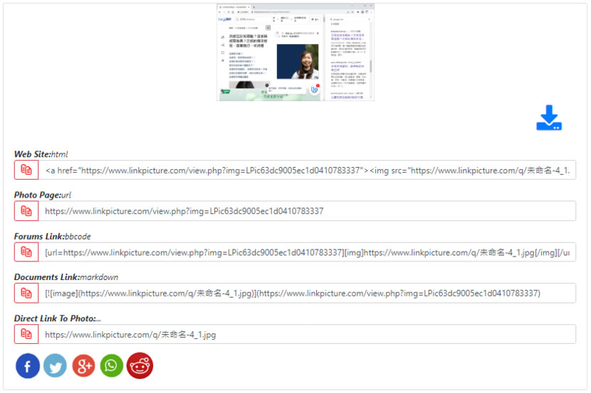 首頁線上工具雲端儲存 LinkPicture 免費圖床上傳產生 URL 外連網址 圖片可直接檢視或內嵌到網頁 為使圖片能顯示在網頁上,如果自己沒有網域或網路儲存空間,尋求圖床服務是個不錯的方案,免費的圖床服務,我們可以使用像是 ZoomHub、gpic、imghut或是老牌imgur等都可以來試試。LinkPicture 是個免費的圖床服務,無須註冊即可將圖片上傳並產生圖片網址,方便分享到社群媒體、論壇、嵌入到網站,或傳送到聊天室給好友們看照片,最大支援 20MB的圖片、不論是 JPG、JPEG、PNG、GIF、BMP、XBM 或 WXMB 均可上傳,如六個月之內,都無人讀取所上船的圖片,則會自動被系統刪除。 🔔 不錯過任何精彩! 立即訂閱我們的 LINE 官方帳號 每次發佈新文章時,您將會第一時間收到本站文章連結通知,輕鬆掌握最新資訊! 使用 LINE 追蹤文章更新 §相關文章,還可以參閱:「免費圖片空間」Freeimage.host 讓您輕鬆上傳圖片並獲得分享連結imghut 免費圖片分享空間 可直接嵌入網頁使用Archive Forever 輸入網址就可以將網頁或網頁截圖永久儲存在區塊鏈上ZoomHub 線上免費圖片分享空間 可內嵌到其它網頁Proton Drive 可設定檔案分享密碼或到期日的免費雲端硬碟 如何使用 LinkPicture 免費圖床服務? 1.進入 LinkPicture 網站,免註冊,點擊[ Select the Images... ]按鈕就可選多張圖片上傳,請注意 Open to everyone 權限,預設是勾選,如不想公開請取消,按[ Upload ]按鈕就開始上傳。 2.完成上傳後,就會產生用於 Web Site、Photo Page、Forums Link 及 Direct Link To Photo 四種類型的網址,方便使用者後續應用。 3.若一次上傳多張圖片怕對應不上 URL,可將網頁向下捲動,直接對照圖片複製 URL 就不會搞錯。 LinkPicture網站網址:https://www.linkpicture.com/en/index.php