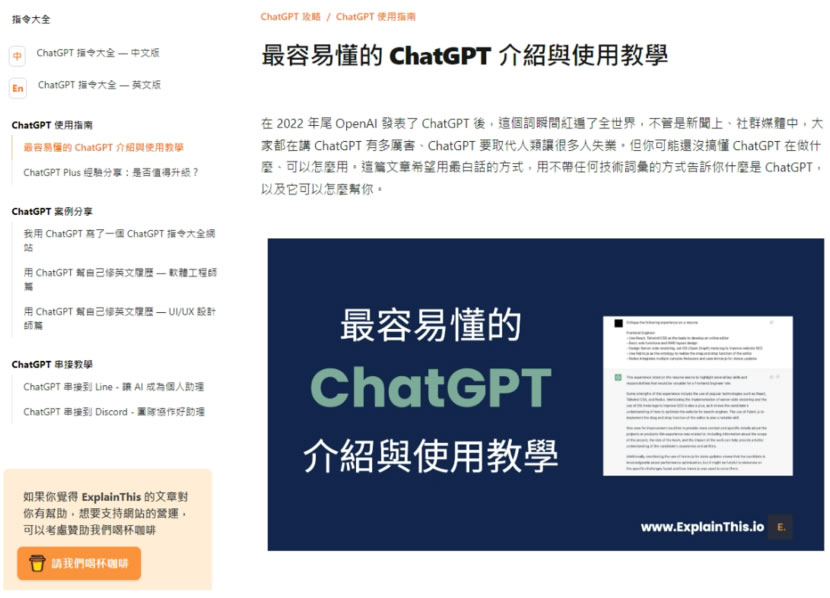 5.如果對以上說明還不了解,可以參考「ChatGPT 指令大全」官網的 ChatGPT 攻略,內有更詳細的使用說明。