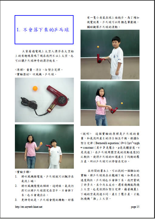 首頁教育學習學習資源 「科學實驗光碟」 國小課外補充教材,適合國小三四年級的學生(附影片) 「一二年級的唐詩64首」適合國小一、二年級 、 「左腦與右腦的數學」適合國小五、六年級的學生 與 「科學實驗光碟」適合國小三四年級的學生,其為一系列的國小課外補充教材,而在「科學實驗光碟」裡,除了豐富的科學案例,像是不會落下的乒乓球、為什麼水不會落下來、使乒乓球沉入水中或是做出美麗的彩虹...等等,都是跟現實生活中相關的生活科學,且每個實驗均有圖文說明文件及附有影音說明影片檔。 🔔 不錯過任何精彩! 立即訂閱我們的 LINE 官方帳號 每次發佈新文章時,您將會第一時間收到本站文章連結通知,輕鬆掌握最新資訊! 使用 LINE 追蹤文章更新 §相關文章,還可以參閱:研究生的福音來了!OpenAI Prism 自動幫你找文獻、排版、畫圖AI 運算的雙雄對決:解析 GPU 與 TPU 的差異與應用AI 心智圖備考術:用 Nano Banana Pro 拆解高普考範圍2026 QS 亞洲大學排名,亞洲前10排名、台灣57校上榜排名一次看免費版也能用 Google Gemini 引導式學習模式,讓 AI 家教帶你深度學習任何知識領域 如何使用「科學實驗光碟」? 1.「科學實驗光碟」大小有 370 MB,點擊上方的[按我下載]後,便會開始下載,下載完成後的檔案為 RAR 格式的壓縮檔,可使用免費的 7-ZIP 免費的壓縮及解壓縮軟體 、 PeaZip免費的壓縮及解壓縮軟體(免安裝繁體中文版) 、Zipeg 及 HaoZip 媲美Winrar的免費壓縮及解壓縮軟體(繁體中文版) 等來解壓縮,解壓縮完成後,會看到兩個資料夾,一個是 MPEG ,裡面釋放所有實驗的影片檔,而另一個資料夾 PDF 則是存放的每個實驗的文件說明。例如第一個實驗 不會落下的乒乓球 其說明文件。 2.若要觀看所提供的實驗影片檔,則須有影音播放器,像是免費的影音播放器 Splayer - 射手播放器、VLC Media Player 及 KMPlayer 等,都是相當不錯的影音播放器。 科學實驗光碟性質:免費官方網站:http://www.tyc.edu.tw/下載:按我下載
