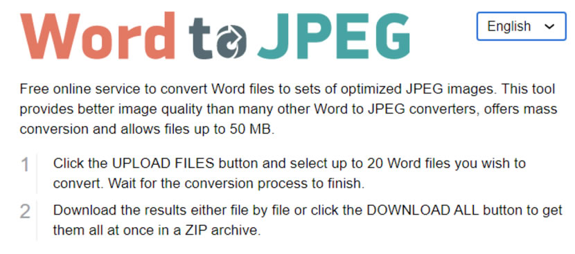 首頁線上工具影像繪圖 Word to JPEG 將 Word(doc、docx)檔案轉換為JPEG圖片格式 即便在沒有 Word 應用程式的輔助下,要開啟 Word(doc、docx)檔案也不是甚麼太大的問題,我們可以安裝瀏覽器擴充工具或是將檔案拿到「Google 文件」或是微軟的 OneDrive 雲端硬碟中來開啟,但上述的方法還是有一定的操作步驟,如果可以將 Word 轉成圖片格式,只需要利用 Windows 內建的圖片 APP就可以直接閱讀到 Word 內容。「Word to JPEG」是一個非常實用的免費線上檔案轉換工具,使用者可以直接上傳 Word 檔案,而不需要註冊,該工具會自動將每個頁面轉換為一個 JPG 圖檔,無須用戶手動逐頁操作,且轉換過程非常迅速,唯一的限制是,檔案大小必須在50MB以下。另外,轉換後的圖片不會有任何浮水印,使用起來非常方便。 🔔 不錯過任何精彩! 立即訂閱我們的 LINE 官方帳號 每次發佈新文章時,您將會第一時間收到本站文章連結通知,輕鬆掌握最新資訊! 使用 LINE 追蹤文章更新 §相關文章,還可以參閱:跟著做就會!教你用 ChatGPT 製作具職業形象的漫畫風頭像Put!所見即所得的 AI 提示詞圖庫:讓你看著範例圖,複製就能做出同級作品Google 親自示範:Nano Banana AI 圖像編輯工具的 13 個熱門玩法照片角度不滿意?AI 幫你調整!3D Camera Control 讓舊照片任意變換視角Meta AI 免費帳戶也能用 Midjourney!無限生成 AI 圖片,台灣可用 如何使用「Word to JPEG」網站,將 Word(doc、docx)檔案轉換為JPEG圖片格式? 1.進入「Word to JPEG」網站,可選擇自己慣用的頁面語言來操作。 2. 無須註冊,就可以將 Word(doc、docx)檔案,使用滑鼠拖曳進虛線框內。 3.整個轉換過程相當快速,完成轉換後,按[ DOWNLOAD ALL ]按鈕,將壓縮檔案下載。 4.解壓縮檔案後,我們就可以使用 Windows 內建的相片工具開啟圖檔。 Word to JPEG網站網址:https://wordtojpeg.com/