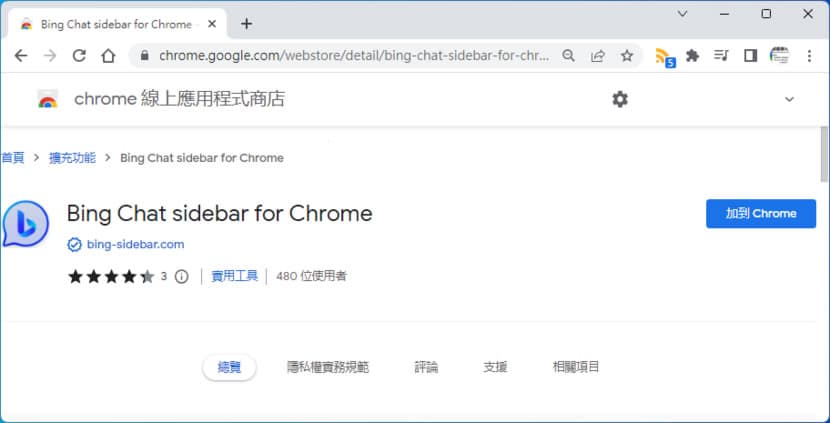 首頁瀏覽器擴充功能生產力工具 Bing Chat sidebar for Chrome 讓 Chrome 在側邊欄就能使用 Bing Chat(瀏覽器擴充功能) 如何能讓 Chrome 瀏覽器也像 Edge 瀏覽器一樣在側邊欄就可以使用 Bing Chat,不但可以聊天、問答,還可以總結當前頁面重點?這時候,我們可以安裝 Bing Chat sidebar for Chrome 這個瀏覽器擴充功能,安裝後,Chrome 就可以如同 Edge 一樣在側邊欄協助完成工作。Chrome 安裝 Bing Chat sidebar for Chrome 擴充功能,可以在 Chrome 瀏覽器中體驗到與 Edge 相同的便利性。這個擴充功能為 Chrome 用戶提供了側邊欄的便利性,無須切換分頁就可以在其中與 AI 即時聊天、提問並獲得答案,同時還能夠專注於當前頁面的重點內容,大幅提升工作效率與的瀏覽體驗。 🔔 不錯過任何精彩! 立即訂閱我們的 LINE 官方帳號 每次發佈新文章時,您將會第一時間收到本站文章連結通知,輕鬆掌握最新資訊! 使用 LINE 追蹤文章更新 §相關文章,還可以參閱:如何在 Chrome 瀏覽器也能使用全新的 Bing AI?「UseChatGPT.AI」快速編寫、改寫、總結、解釋或翻譯網站上的任何文章 (瀏覽器擴充功能)WebChatGPT 結合網路搜尋資料,讓 ChatGPT 整合資訊沒有時間限制(瀏覽器擴充功能)ChatGPT Prompt Genius 將 ChatGPT 對話內容完整的匯出成 PNG、PDF、MD 檔或分享網址(瀏覽器擴充功能)MindPane 將任何網頁快速轉換為思維導圖(瀏覽器擴充功能) 如何安裝及使用 Bing Chat sidebar for Chrome 瀏覽器擴充功能? 1.進入 Bing Chat sidebar for Chrome 瀏覽器擴充功能安裝網頁後,按[ 加到 Chrome ]按鈕,隨後依照指引進行安裝。 2.完成後會有提示訊息。 3.使用時,基本就跟 Edge 瀏覽器一模一樣。 Bing Chat sidebar for Chrome官方網站:https://chrome.google.com/webstore/detail/bing-chat-sidebar-for-chr/ncjedehfkpnliaafimjhdjjeggmfmlgf/related