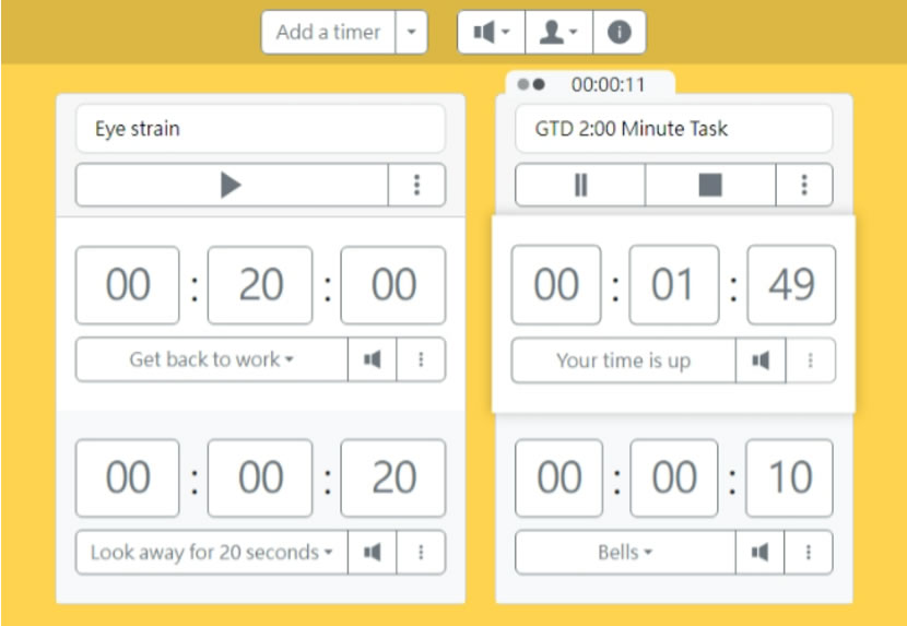 此外,Timerdoro 也適用於其他時間管理技巧,例如 20-20-20 規則。這個規則建議每 20 分鐘專注於工作或閱讀時,要休息 20 秒鐘,並且在休息期間注視距離 20 英尺(約6公尺)外的物體,以減輕眼睛疲勞和視力問題。使用 Timerdoro,可以輕鬆地設置 20 分鐘的計時器,並在計時結束時提醒使用者休息和眺望遠方,確保眼睛健康。
