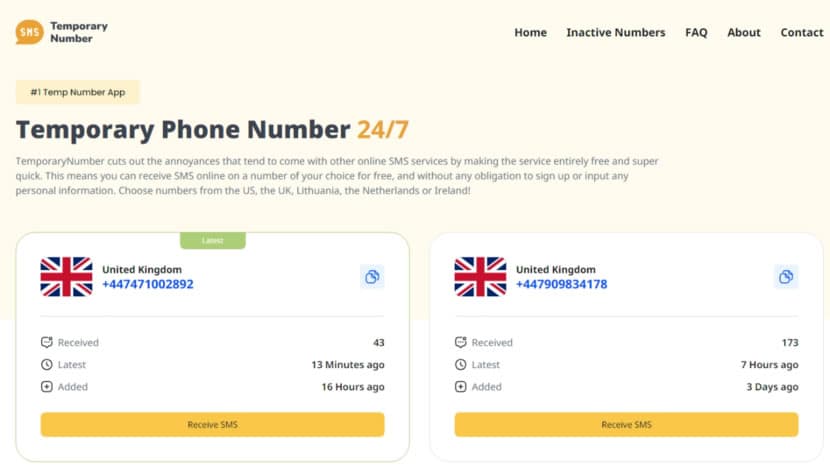 其中,TemporaryNumber 是一個免費的服務,它提供美國、英國、立陶宛、荷蘭與愛爾蘭的手機號碼,並且可以在線上閱讀接收到的簡訊。使用起來也十分簡單,只需選擇所需的手機號碼,然後輸入到欲註冊的服務中,我們就能在該號碼下讀取到收到的所有簡訊。然而,值得注意的是,這些簡訊的內容是公開的,所以我們仍需要留意是否存在資訊安全等相關問題。