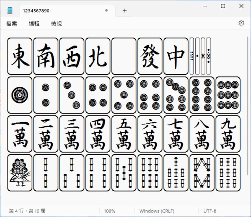 首頁免費字型特殊字型 Mahjong Font 麻將字型免費下載,輕鬆用鍵盤打出麻將文字 要在設計或文書中使用麻將圖形,我們可以使用 Unicode 的麻將牌區段(U+1F000至U+1F02B) 來顯示,但並非所有的設計或文書軟體都能支援 Unicode 的輸入,這時候,我們可以安裝 Mahjong Font,利用字型輕鬆輸入想要的麻將牌面。Mahjong Font 共有 72 個牌面及 219 個字符,包含直向與橫向與骰子,而輸入時也非常有規律,小寫就是直向,橫向牌面則有對照表可以參照。 🔔 不錯過任何精彩! 立即訂閱我們的 LINE 官方帳號 每次發佈新文章時,您將會第一時間收到本站文章連結通知,輕鬆掌握最新資訊! 使用 LINE 追蹤文章更新 §相關文章,還可以參閱:新北市自研免費教育字型,包含點點字、實心字、空心字,立即下載英文字母與數字學習字型含英、數及符號的「麥當勞薯條體」免費下載自由使用如何用 MusiSync Font 打出音樂音符?免費 39碼條碼字型下載與實際應用LMS Beyond Infinity Font 免費玩具總動員字型 如何安裝及使用 Mahjong Font? 1.解壓縮完成下載的檔案,滑鼠左鍵雙擊 .ttf 檔案,便可以預覽該字體以及安裝。 2.完成安裝,開啟應用軟體,將字型選擇 Mahjong 後,便可以開始輸入。 3.而其輸入的規則也很好記: 123456…這樣過去是東南西發白板發中和骰子 qwerty...是筒子 asdfgh...是萬 zxcvbn...是條 而橫向牌面則可以參考對照表。 Matching Font - fontspace官方網站:https://www.fontspace.com/mahjong-font-f3041下載:按我下載