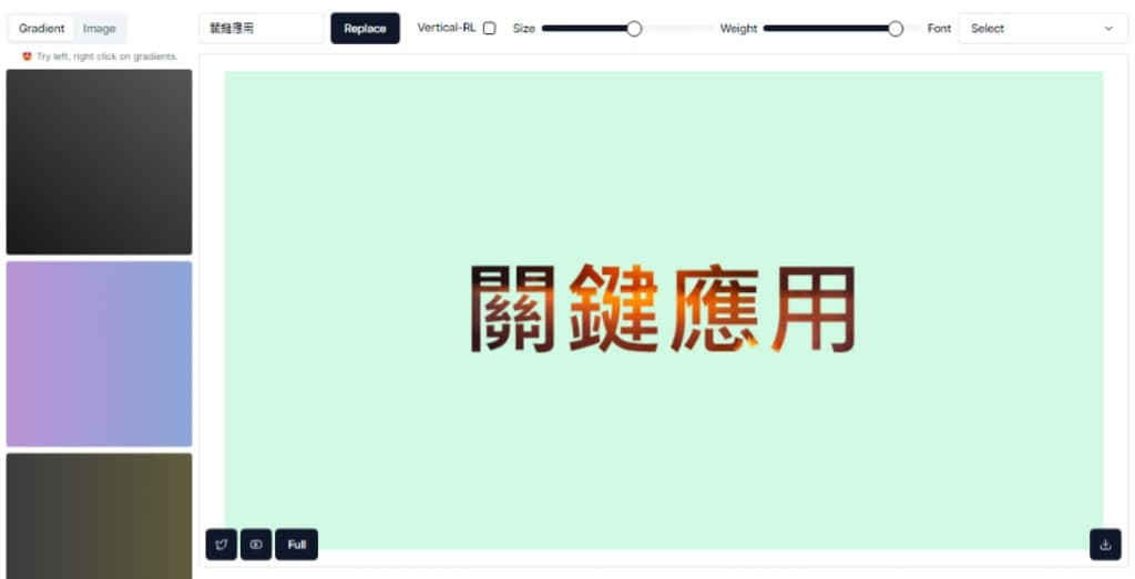 使用 Magicfont,用戶可以輕鬆的為文字加入漸層色彩效果,讓文字變得更具吸引力,而系統也提供多種漸層模板讓用戶可以自行選擇套用,不僅可以使用模板,快速的讓文字顏色從一種色彩過渡到另一種的漸層色彩外,Magicfont 還可以以圖片填充文字,讓文字展現不同的創意與視覺效果,Magicfont的漸層工具簡單易用,即使是初學者也能輕鬆上手。