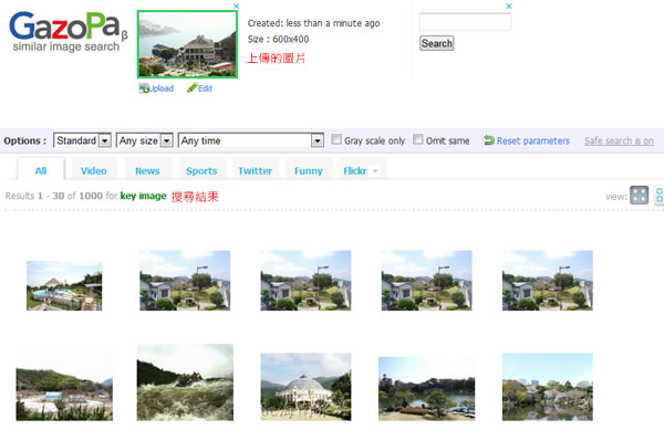 另外,GazoPa 還是可以使用傳統的關鍵字來搜尋。