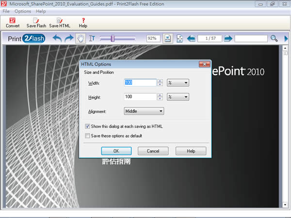 3.接下來就會開啟 Print2Flash 主介面來選擇 Falsh 的樣式,選擇好之後,點擊[Ok]便開始轉換程序。
