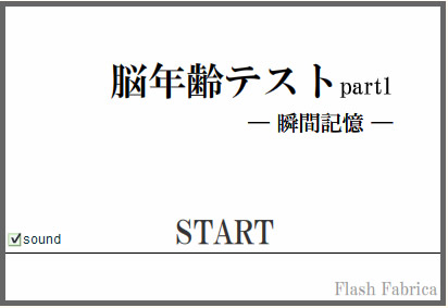 首頁線上工具益智遊戲 FlashFabrica 瞬間記憶 - 測試腦年齡 「外強中乾」、「身分證年齡不重要」說到底,還是腦袋好最重要,在 FlashFabrica 網站有提供一個瞬間記憶遊戲,來測試腦袋的實際年齡,準確度如何?自己試試就知道。 🔔 不錯過任何精彩! 立即訂閱我們的 LINE 官方帳號 每次發佈新文章時,您將會第一時間收到本站文章連結通知,輕鬆掌握最新資訊! 使用 LINE 追蹤文章更新 §相關文章,還可以參閱:Google Doodle 萬聖節遊戲登場!小精靈 45 週年特別版完整介紹毫秒級反應力大挑戰!用 Reaxon 訓練大腦、眼睛與手的協調反應2048 Cupcakes 經典單人 2048 滑塊線上遊戲,AI 輔助輕鬆挑戰高分免費線上拼圖遊戲平台:iLoveJigsaw 可自行上傳圖片製作拼圖Songlio:線上聽音樂猜歌曲名稱遊戲,可自訂歌曲題庫並與多人一起挑戰 如使用瞬間記憶 - 測試腦年齡 遊戲? 1.進入 FlashFabrica 網站後,點擊[START]便開始遊戲。 2.遊戲規則就是將頁面上有限時間內所出現的數字記憶下來,並在反白後,使用滑鼠由小到大順序點擊出來。 3.測驗結束後,結果出爐...。 FlashFabrica網站網址:http://flashfabrica.com/f_learning/brain/brain.html