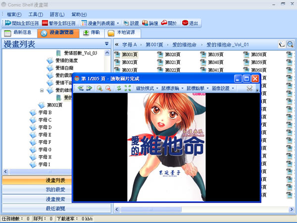 6.接著點擊[傳輸],便能夠看到剛剛所下載漫畫的進度