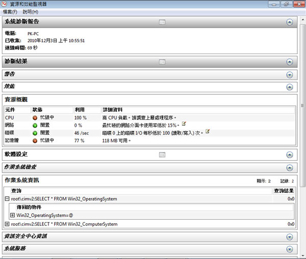 首頁操作技巧Windows 善用 Windows 7 「效能資訊及工具」來檢視系統健康情況 剛安裝完 Windows 7 作業系統或使用 Windows 7 一段時間後,若感覺效能降低或是想替系統做一次全面的系統健康檢查,其實並不需要安裝其它的檢測工具,透過 Windows 7 控制台內建的「效能資訊及工具」便可將軟體、硬體做一次完整的健康檢查,並列出效能等及評分與改善建議。 🔔 不錯過任何精彩! 立即訂閱我們的 LINE 官方帳號 每次發佈新文章時,您將會第一時間收到本站文章連結通知,輕鬆掌握最新資訊! 使用 LINE 追蹤文章更新 §相關文章,還可以參閱:學起來!微軟親授 10 個提升 Windows PC 效能的技巧如何升級 Windows 11 25H2?最新版本功能亮點與完整更新步驟Windows 工作列時鐘顯示秒數:真的會影響電池續航力嗎?LTT Labs 完整實測解析Windows 快速取出資料夾檔案名稱清單!內建功能輕鬆搞定,不用額外軟體Windows 11 如何縮小工作列圖示按鈕,打造更精簡桌面視覺 如何使用 Windows 7 「效能資訊及工具」來檢視系統健康情況? 1.點擊[開始]按鈕,進入[控制台]。 2.在所有控制台功能表內,點擊[效能資訊及工具]。 3.接下來點擊[評等這部電腦],稍後下便可看到電腦效能的等級評分,詳細的評等說明,可點擊[這些數字代表什麼?],若想要更進階的資訊,可點擊[進階工具]。 4.在進階工具內,點擊[產生系統健康情況報表],不過須注意要使用這項功能,必須以系統管理員的帳戶登入才能使用。系統診斷時,會先收集60秒的資料。。 5.接下來,便會產生一份系統診斷報告。