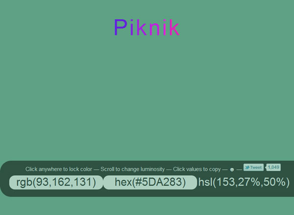 首頁線上工具生產力工具 Piknik 線上顏色選擇工具 Piknik 是一個免費的線上顏色選擇服務,不同其它工具的選擇方式,Piknik 只要移動滑鼠,便能顯示出顏色,若搭配其顯示顏色的 RGB、HEX 及 HSL 的顏色碼區塊,整體配色方式就會相當協調,而所提供的顏色碼,只要複製就可以應用。 🔔 不錯過任何精彩! 立即訂閱我們的 LINE 官方帳號 每次發佈新文章時,您將會第一時間收到本站文章連結通知,輕鬆掌握最新資訊! 使用 LINE 追蹤文章更新 §相關文章,還可以參閱:OpenAI 在 ChatGPT 中測試廣告|哪些帳戶受影響、廣告運作原則一次看在蝦皮當賣家,商品如何定價?手續費、免運、稅金怎麼算?蝦皮手續費計算機幫你全搞定!Google AI Plus 降到 260 元對決 ChatGPT Go!誰的功能更值得訂閱?ChatGPT Go 月付 290 元值得嗎?免費版、Plus 完整比較用 AI 做出的電影,YouTube 就看得到!一起來欣賞這部贏得百萬美元的突尼西亞短片《Lily》 如何使用 Piknik? 1.進入 Piknik 的網站後,便可移動滑鼠或使用滑鼠的滾輪來選擇顏色。 2.移動到自己喜歡的顏色後,要複製顏色代碼時,可先在網頁上點擊滑鼠一次來鎖定該顏色,複製要使用的顏色代碼,便可作為後續應用。 Piknik網站網址:http://color.aurlien.net/