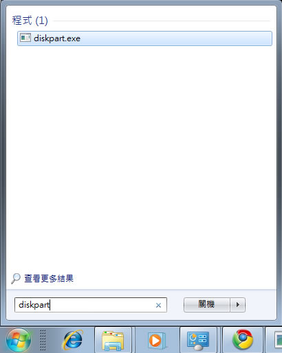 1.使用 Windows 7 為例,點擊[開始]功能表,在[搜尋程式及檔案]處,輸入 Diskpart 後,按下鍵盤的[Enter]鍵。