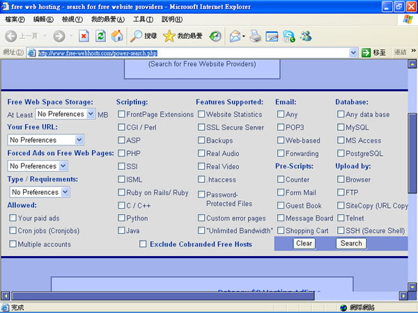 首頁線上工具上傳下載 free-webhosts 將免費空間一網打盡的搜尋網站! 到底有哪些網站有提供免費空間,提供出來的免費空間又有哪些限制?如果你還在一個一個找,你可以試試這個網站所提供的服務,讓你針對你所需求的條件而去篩選,幫助你在最短時間內找到你想要的免費空間哦! 🔔 不錯過任何精彩! 立即訂閱我們的 LINE 官方帳號 每次發佈新文章時,您將會第一時間收到本站文章連結通知,輕鬆掌握最新資訊! 使用 LINE 追蹤文章更新 §相關文章,還可以參閱:getM3U8 免費線上工具:輕鬆下載 M3U8 串流影片並轉檔 MP4SnapWC 免費影片下載器:一鍵搞定 YT、IG、FB、抖音等 10,000+ 平台影片、音訊、圖片需要分享圖片連結?試試 PiXhost 免費圖床服務P2PFileShare 線上 P2P 傳檔免費工具,免安裝無檔案大小限制直接瀏覽器傳輸KuaishouVideoDownload:快手影片下載免費工具,無浮水印快速儲存 如何使用free-webhosts所提供的服務? 1.該網站為英文網站,如果英文不好,可以使用Google所提供的服務Google所翻譯出來中文頁面或使用Client for Google Translate 隨時隨地輕鬆使用Google翻譯。 2.假設我們需要一個免費空間,它需要PHP型態的,且需要有計數器讓我統計下載的人數,最好還有留言板,在網頁上我們如下圖這樣勾選起來後,按[搜索]。 3.接下去便會跳轉到符合剛剛勾選條件的網站列表 4.點選該列表最後[Review],會出現詳盡的介紹,讓你可以先挑好再進去註冊,省去不少時間。 free-webhosts網站網址:http://www.free-webhosts.com/power-search.php