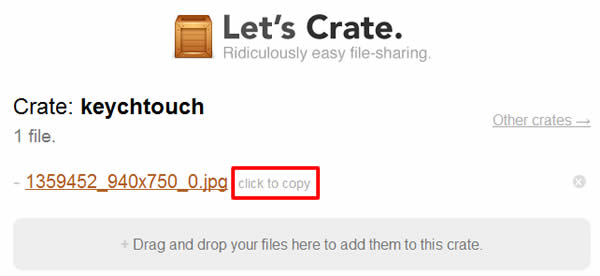 Let′s Crate 是一個操作相當簡單的檔案分享免費服務,只要將檔案拖到網頁的指定位置,便會開始上傳,上傳完成後,便會取得檔案的下載連結短網址,未註冊的用戶,檔案上傳後,可保留 30 分鐘,若覺得時間太短,可註冊成為擁有 200 MB 檔案存放空間的免費用戶,登入 Let′s Crate 後,可以建立檔案的存放目錄來管理所上傳的檔案並取得每個檔案的對外下載連結短網址。