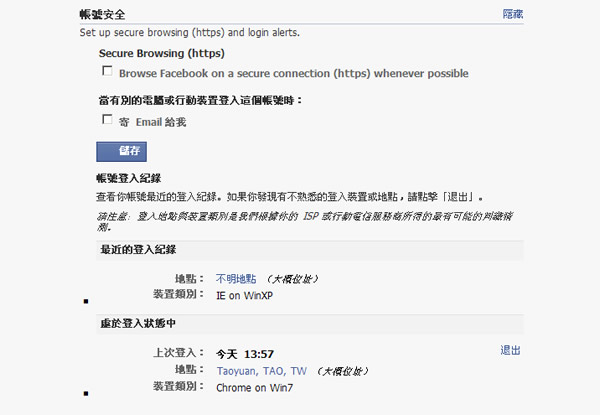 首頁線上工具資訊安全 如何啟用 Facebook 上的 Secure Browsing 及帳號登入警示服務,讓你的帳號更安全 常瀏覽 Facebook 網站的同時,你或許會擔心網站的安全性,現在 Facebook 官網已推出 Secure Browsing 的帳號安全設定,讓你瀏覽 Facebook 時可更加安全。那什麼是 Secure Browsing 呢?簡單的來說,以前瀏覽網頁時,大都使用 Http 通訊協議,透過 Facebook 官網設定 Secure Browsing 後,就會使用 Http + SSL 的結和,變成 Https,它可讓我們的電腦與 Facebook 服務器在互相通信時進行加密。設定相當簡單,建議可前往設定成更安全的瀏覽方式。 🔔 不錯過任何精彩! 立即訂閱我們的 LINE 官方帳號 每次發佈新文章時,您將會第一時間收到本站文章連結通知,輕鬆掌握最新資訊! 使用 LINE 追蹤文章更新 §相關文章,還可以參閱:終結網路霸凌!Google 搜尋新工具幫你永久移除私密影像注意!Let's Encrypt 憑證期限從 90 天減半至 45 天,因應方法看這裡朱雀大模型檢測:騰訊推出的 AI 內容鑑別工具,精準識別 AI 生成文章與圖片如何透過「Google One」檢查 Gmail 是否因資料侵害事件外洩到暗網上?Batch PDF Encryptor 替 PDF 檔案加入擁有者與開啟密碼保全措施 免費可批量 如何設定 Facebook 上的 Secure Browsing (Https) 及 帳號登入警示服務? 1.登入自己的 Facebook 帳號後,點擊右上角的[帳號] > [帳號設定]。 2.進入設定頁面後,在[設定]的頁籤裡,點擊帳號安全後的[更改]。 3.將[Browse Facebook on a secure connection (https) whenever possible]勾選,就可以啟用 Https 的安全瀏覽模式。