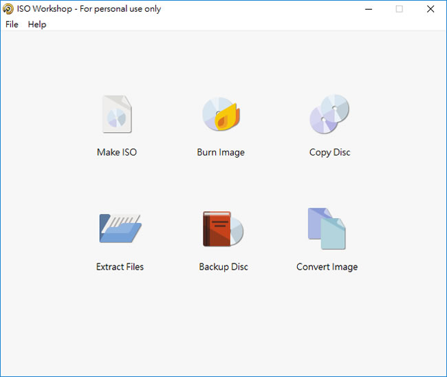 1.完成安裝,開啟 ISO Workshop 後,便可看到其六大主要功能。