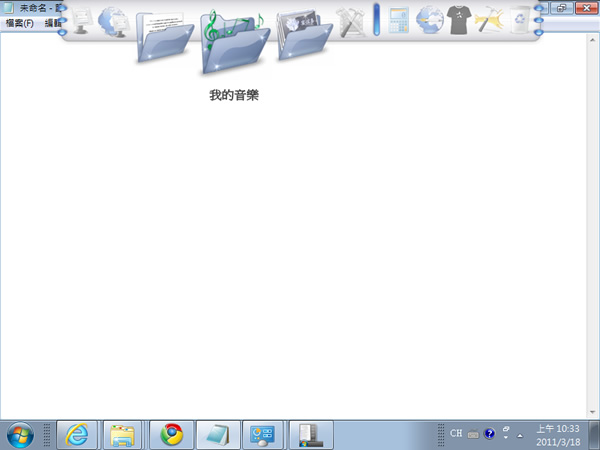 9.若要新增工具列內的項目,只要將資料夾、程式捷徑或檔案使用滑鼠拖拉放到工具列內即可或點擊[新增程式]依照所要的項目來新增。