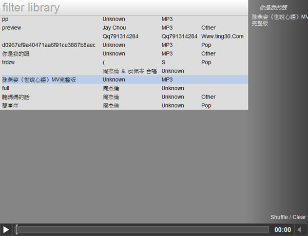 首頁線上工具影音視聽 MP3 Player 讓你用瀏覽器就能聽硬碟裡的 MP3 音樂(HTML 5 ) 想要在電腦裡聽 MP3 音樂時,若不想安裝其他的音樂播放器時,通常會使用 Windows 內建的 Windows Media Player 來播放,不過現在可以有另外一個選擇,就是使用網路瀏覽器就能播放電腦硬碟裡的 MP3 音樂檔案,只要進入 MP3 Player 這個以 HTML 5 規範所製作的免費網路應用程式網站(目前支援 Google Chrome 瀏覽器),網站不需登入,操作起來也非常簡單,就像其他 MP3 音樂播放工具一樣,可以選取電腦硬碟中裡的 MP3 檔案來規劃播放清單、隨機播放、調整音量等等。 🔔 不錯過任何精彩! 立即訂閱我們的 LINE 官方帳號 每次發佈新文章時,您將會第一時間收到本站文章連結通知,輕鬆掌握最新資訊! 使用 LINE 追蹤文章更新 §相關文章,還可以參閱:來了!OpenAI Sora Android 版上線 Google Play,台灣用戶同步開放Google 親授 Veo 3.1 用電影語言與音效設計打造完美 AI 影片Sora Watermarker:一鍵為影片加上 OpenAI Sora 浮水印一文看懂 Grok Imagine v0.9 升級亮點,再用範例帶你實戰圖像與影片生成魔法免邀請碼免VPN!MindVideo 讓你無限次免費用 Sora 2 生成影片 如何使用 MP3 Player 播放硬碟裡的 MP3 音樂? 1.要使用 MP3 Player 必須使用 Google Chrome 瀏覽器進入 MP3 Player 的網站,進入後,點擊[選擇檔案]。 2.接下來就會出現要你選擇硬碟中儲放 MP3 音樂檔案的資料夾,它會自動包含子資料夾內的歌曲檔案,點擊[確定]。 3.接下來,從資料夾內所找到的歌曲檔案,會先列出在左方的列表中,這時候你可以點擊左方列表中的準備要播放的幾首歌曲,將它們加入到頁面右邊分隔欄內要播放的清單中。 4.當要播放的時候,只要點擊頁面右邊分隔欄內要播放清單中的歌曲,便會開始播放,若要歌曲的進度進行控制、音量大小均可透過頁面下方的幾個圖示來控制,若想要隨機播放時,可點擊[Shuffle]來隨機播放。 MP3 Player網站網址:http://antimatter15.github.com/player/player.html
