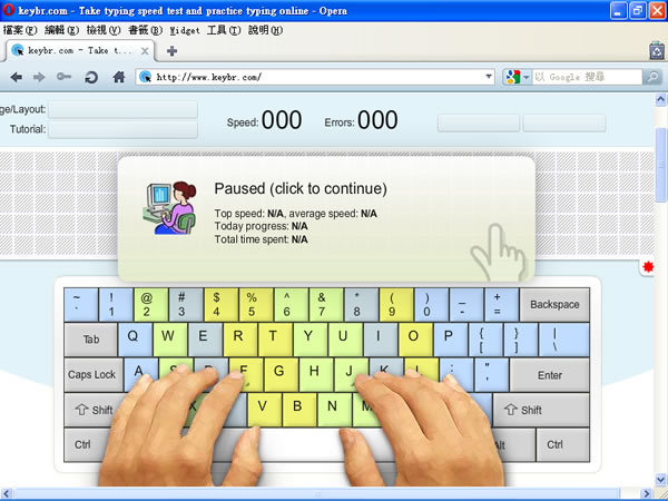 3.在輸入的過程中,上方會顯示打字速度/每分鐘及錯誤字數。