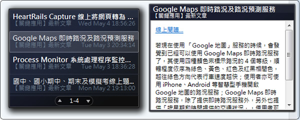 7.接下來,回到已開啟的「桌面小工具 - 摘要頭條」便會看到已訂閱的 Rss 資訊已經進到裡面了。
