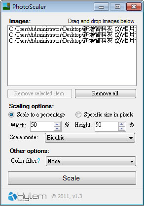 首頁電腦軟體影像繪圖 PhotoScaler 批次縮放圖片大小的免費工具(免安裝) 想要批次縮放圖片大小時,可以來試試這套 PhotoScaler 免費工具,縮放圖片大小時可按照百分比或是使用像素為單位來進行縮放,並可選擇 Scale mode 縮放模式,操作簡單,且免安裝。 🔔 不錯過任何精彩! 立即訂閱我們的 LINE 官方帳號 每次發佈新文章時,您將會第一時間收到本站文章連結通知,輕鬆掌握最新資訊! 使用 LINE 追蹤文章更新 §相關文章,還可以參閱:告別訂閱制!Canva 旗下 Affinity 永久免費,向量設計、影像處理、排版工具全面開放Pineapple Pictures 載入速度超快的相片檢視器(免安裝)PhotoResizerOK 可快速調整圖片尺寸的免費軟體ShortDoorNote 將輸入的文字快速轉成圖片Bzzt! Image Editor 圖片批次壓縮、轉檔及尺寸調整的免費工具 如何使用 PhotoScaler? 1.下載、解壓縮後,執行「PhotoScaler.exe」即可開啟,無須安裝。 2.開啟後,將要進行縮放的圖片使用滑鼠拖拉到下圖紅色框中,選擇與輸入圖片縮放的百分比或像素單位,點擊[Scale]後,再選擇圖片要存放的路徑便可。 PhotoScaler版本:1.3語言:英文性質:免費適用:Windows官方網站:http://www.xylemstudios.com/products/photoscaler.php下載:a href="http://www.xylemstudios.com/products/photoscaler/download.php" target="_blank" rel="noopener">按我下載