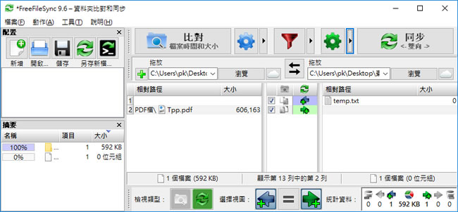 FreeFileSync 是一個可以將指定的兩個資料夾進行掃描比對,比對的項目可以選擇比對「檔案大小和日期」或「檔案內容」,比對之後還可以指定單一檔案於同步時執行複製、刪除或是不動作,而同步之前,也有鏡像、升級、雙向同步等選項。