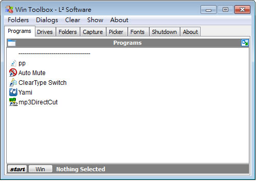1.下載後,直接執行[WinToolBox.exe],便可開啟主程式,無須安裝,在 Programs 頁籤中,可將常用的資料夾、檔案或程式捷徑,使用滑鼠拖曳進去,下次要使用時,便可從這裡,使用滑鼠雙擊後來開啟。