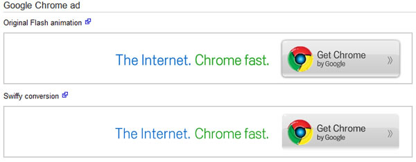 首頁線上工具檔案管理 Google Swiffy 將 Flash 轉成 HTML5 Google Swiffy 是處在 Google Labs 中的一項產品,其功能是將 Flash 中屬於 SWF 格式的影音格式可以轉換成 HTML5 的格式,如此一來,要播放 SWF 檔案時,就不再需要 Flash播放器,使其應用在支援 HTML5 的瀏覽器或是 iPhone、iPad 上。 🔔 不錯過任何精彩! 立即訂閱我們的 LINE 官方帳號 每次發佈新文章時,您將會第一時間收到本站文章連結通知,輕鬆掌握最新資訊! 使用 LINE 追蹤文章更新 §相關文章,還可以參閱:VERT:開源本地端檔案格式轉換器,隱私優先的免費瀏覽器轉檔工具PageSplitty 線上 PDF 分割轉 JPG、PNG、WebP 圖工具,支援 5GB 大小的大檔案PixDuplicate:免上傳快速找出並刪除重複照片的免費線上工具Adapter:全方位影片、音檔及圖片格式轉換免費軟體,支援影片轉音檔與圖片,音檔及圖片格式互轉TextCompare 線上比較 Excel、PDF 及圖片,快速找出檔案不同之處 如何使用 Google Swiffy? 1.進入 Google Swiffy 網站後,點擊[選擇檔案]來選擇電腦裡的 SWF 檔案,選擇好之後,勾選 Important ,再點擊[Upload and convert]即可。 2.可到 Gallery 頁籤(http://swiffy.googlelabs.com/gallery.html),觀看由 Google 做的範例。 3.其一的範例。 Google Swiffy網站網址:http://swiffy.googlelabs.com/