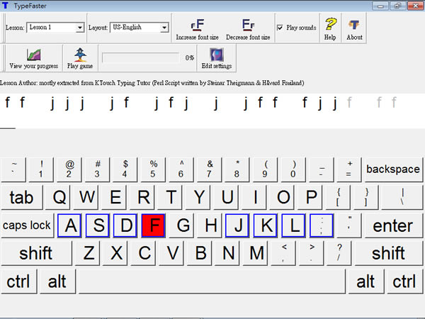 首頁教育學習打字練習 TypeFaster 免費的英打練習引導軟體 初學英打時,就是要熟記手指與各個鍵盤的相對應位置,TypeFaster 是一個相當適合英打初學者的免費輔助練習工具,TypeFaster 除了會引導練習者的指法與鍵盤對應關係之外,還將整個練習課程區分為 15 個課程,且每個課程均可自行編輯,另外,TypeFaster 亦提供數字鍵盤練習及一個打字遊戲,有需要練習英打的朋友,可以來試試這套免費的英打練習軟體。 🔔 不錯過任何精彩! 立即訂閱我們的 LINE 官方帳號 每次發佈新文章時,您將會第一時間收到本站文章連結通知,輕鬆掌握最新資訊! 使用 LINE 追蹤文章更新 §相關文章,還可以參閱:Live Typing Test:免費線上英文打字測試,提升速度與準確率typings:多語言線上免費打字練習工具,專為提升打字技能而設計Monkeytype 線上英打練習免費服務 快速提升打字速度與正確率TypingCat 提供英文打字課程、速度測試的免費網站「花蓮縣打字練習網」線上中、英文及注音符號打字練習 如何使用TypeFaster ? 1.下載並安裝,開啟 TypeFaster 主程式,其介面操作可參考下圖。 2.要開始練習時,配合指法將範本內的字母輸入,課程的練習進度會出現在上方的進度條;完成練習,便會出現統計;另外可在 Lesson 處來切換各個不同的練習進度。 3.若想練習數字鍵盤,可在 Layout 處來切換。 4.若想自編練習範本,可點擊[Edit settings]來開啟編輯視窗,再點擊[Edit lessons]。 所出現的視窗中,選擇要編輯的課程後,點擊[Edit]。 TypeFaster版本:0.4.2語言:英文性質:免費適用:Windows官方網站:https://portableapps.com/apps/education/typefaster_portable下載:按我下載