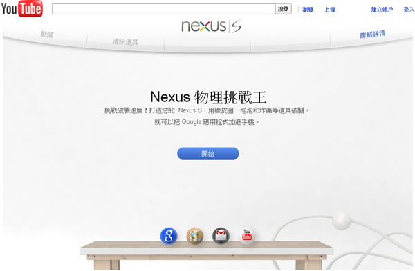 首頁線上工具益智遊戲 Nexus 來玩 Google 所推出的物理挑戰王網頁遊戲,很有挑戰性喔 最近 Google 除了新推出的 Google+ 及更新 Google 地圖街景服務、「Google 圖片」以圖找圖搜尋服務 等服務,為了拉抬自家的 Nexus S 手機與 App 服務,也推出了一個「Nexus物理挑戰王」的網頁小遊戲,讓玩家可以挑戰破關的速度,遊戲規則相當簡單,玩家必須透過遊戲所提供的道具,像是橡皮筋、電扇、磁鐵、泡泡、炸藥、重力反轉紐等,讓代表著 Google 各項服務的圓球體落入紅色漏斗中,規則簡單好懂,但有其難度。 🔔 不錯過任何精彩! 立即訂閱我們的 LINE 官方帳號 每次發佈新文章時,您將會第一時間收到本站文章連結通知,輕鬆掌握最新資訊! 使用 LINE 追蹤文章更新 §相關文章,還可以參閱:Google Doodle 萬聖節遊戲登場!小精靈 45 週年特別版完整介紹毫秒級反應力大挑戰!用 Reaxon 訓練大腦、眼睛與手的協調反應2048 Cupcakes 經典單人 2048 滑塊線上遊戲,AI 輔助輕鬆挑戰高分免費線上拼圖遊戲平台:iLoveJigsaw 可自行上傳圖片製作拼圖Songlio:線上聽音樂猜歌曲名稱遊戲,可自訂歌曲題庫並與多人一起挑戰 如何玩 Nexus 物理挑戰王? 1.進入 Nexus物理挑戰王 遊戲後,點擊[開始]。 2.接下來,遊戲會先指引你該如何玩,調整道具的角度,點擊[鬆開],看球體所彈飛曲線,再次調整,直到球體落入紅色漏斗中。 3.指引的關卡,一般很輕鬆就能過關,第二關的部分就已經很有挑戰性,玩家可要有耐心,不過要善用多個道具組合,還是很容易就能過關的。 Nexus 物理挑戰王網站網址:http://www.youtube.com/user/nexuscontraptions