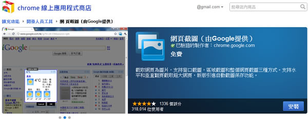 Chrome Screen Capture 是由 Google 官方所開發的 Chrome 瀏覽器免費外掛應用工具,支援網頁可視區域擷取、自訂區域擷取、整個網頁擷取成圖片及電腦螢幕擷取的四種擷取方式,擷取成圖片後,可以利用圖片編輯工具來編輯該圖片,或是利用 Chrome Screen Capture 所提供的簡易圖片編輯工具,像是加入框線、模糊、插入文字、畫線或箭頭等等,然後將編輯後的圖片儲存為 PNG 格式的圖片文件。另外,Chrome Screen Capture 可在 Windows、Linux 及 Mac 等作業系統應用,並可將擷取的圖片直接分享到 Picasa Web、Facebook 或是新浪微博,是相當方便的網頁擷取成圖片的 Chrome 擴展應用。