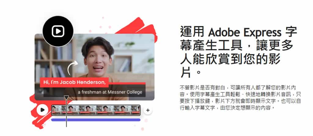 「Adobe Express 影片字幕產生工具」是一個免費的線上服務,專為自動添加影片字幕而設計。使用者只需選擇影片內容所使用的語言並上傳影片檔案,網站就會自動將字幕以圖層方式嵌入影片中並提供多種字幕樣式,讓使用者自行挑選和應用。此外,對於影片中識別錯誤的字幕,該工具允許使用者手動進行修正,並且可以將中文字幕翻譯成其他語言。使用「Adobe Express 影片字幕產生工具」的基礎功能無須註冊,且影片上傳有 1GB大小和 5分鐘時長的限制。此工具不提供獨立的字幕檔,字幕會直接嵌入到影片中。