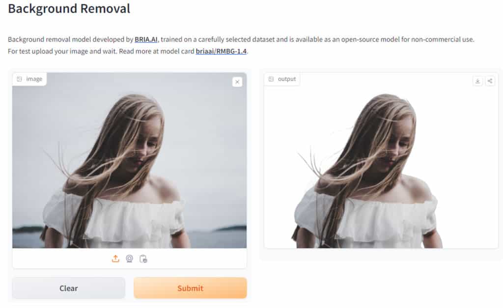 首頁線上工具影像繪圖 BRIA RMBG:圖片精準去背景 AI 工具,免費線上建立無背景圖片 雖然有許多工具可以自動去除圖片背景,但效果未必能滿足所有需求。特別是針對頭髮等複雜場景,大多數自動去背景的 AI 工具表現並不理想。BRIA RMBG 是一個免費的線上 AI 工具,專為去除圖片背景而設計。BRIA RMBG 通過精心挑選的數據集進行訓練,涵蓋了各種場景,從商品圖片到遊戲和廣告內容,幾乎囊括了所有可能的情況。而在使用上,使用者只需上傳圖片,BRIA RMBG即可自動、精確地去除圖片背景。該工具無需註冊帳戶即可免費使用,且沒有使用次數限制。 🔔 不錯過任何精彩! 立即訂閱我們的 LINE 官方帳號 每次發佈新文章時,您將會第一時間收到本站文章連結通知,輕鬆掌握最新資訊! 使用 LINE 追蹤文章更新 §相關文章,還可以參閱:跟著做就會!教你用 ChatGPT 製作具職業形象的漫畫風頭像Put!所見即所得的 AI 提示詞圖庫:讓你看著範例圖,複製就能做出同級作品Google 親自示範:Nano Banana AI 圖像編輯工具的 13 個熱門玩法照片角度不滿意?AI 幫你調整!3D Camera Control 讓舊照片任意變換視角Meta AI 免費帳戶也能用 Midjourney!無限生成 AI 圖片,台灣可用 BRIA RMBG 網站使用方式: 1.進入 BRIA RMBG 網站,就可以依指示將圖片使用滑鼠拖曳進 image 欄位內,或是點擊該欄位選擇圖片。 2.以網站 Examples 內的圖片來看,效果確實不錯。 3.以下是處理的效果圖,可以看見其對髮絲之間都能精準的處理。 4.對細節的處理還是很精準。 5.最後,可以點擊下圖紅色箭頭所指的圖示按鈕來下載處理後的圖片。 使用 BRIA RMBG 模型移除圖片背景的效果相當出色。當然,有許多類似的工具可供選擇,甚至像 Windows 內建的小畫家也能直接執行移除圖片背景任務。因此,不同的圖片想要移除背景,可以多試試幾項工具,或有不同的效果,可以多比較。 BRIA RMBG網站網址:https://huggingface.co/spaces/briaai/BRIA-RMBG-1.4
