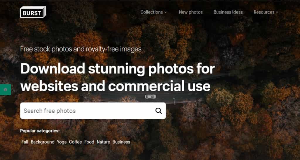 1. 使用 Burst 無需註冊,可在頁面上輸入關鍵字進行搜尋,或是點擊「Collections」按分類來預覽圖片。